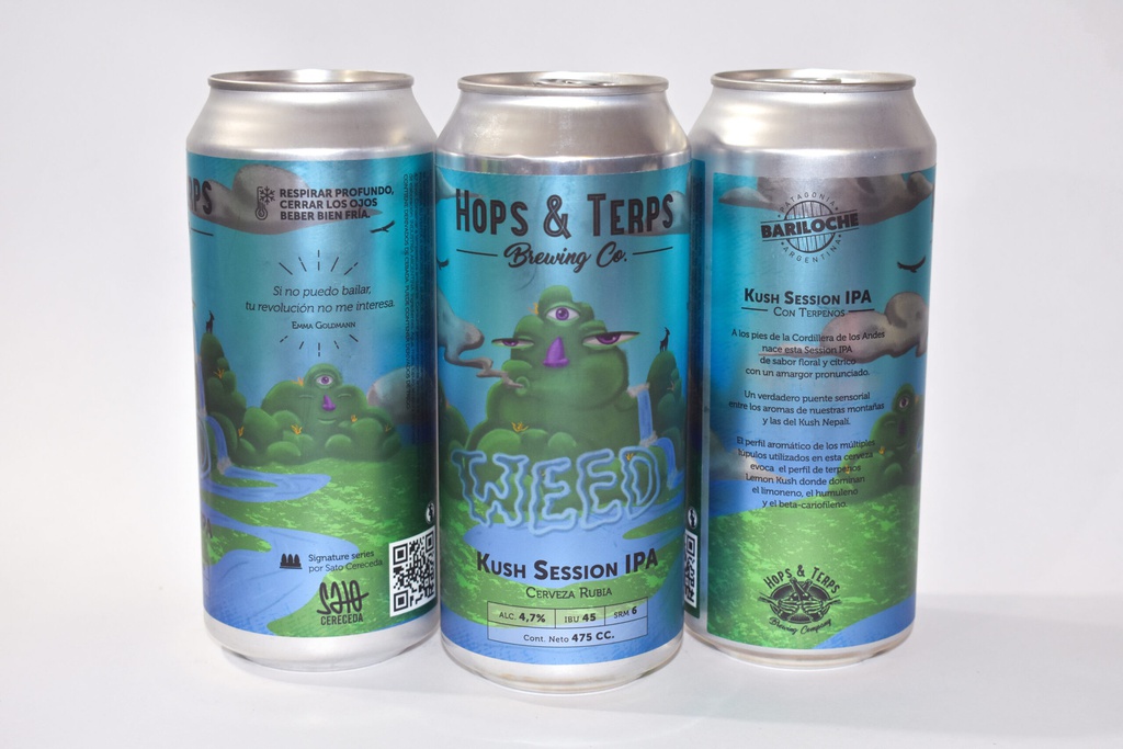 La cerveza Hops & Terps es una innovadora cerveza artesanal argentina (con presencia en Bariloche y Cipolletti) pionera en incorporar terpenos, compuestos aromáticos botánicos que imitan perfiles de cepas de cannabis, sin contener THC ni CBD. Ofrece un aroma intenso y un sabor tropical complejo, a menudo utilizando lúpulos como Simcoe, Mosaic, Strata o Citra.